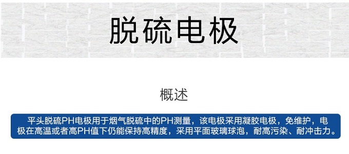 平頭脫硫pH電極用于煙氣脫硫中的pH測量,該電極采用凝聚電極,免維護,電極在高溫或者高pH值下仍能保持高精度,采用平面玻璃球泡,耐高污染、耐沖擊力。