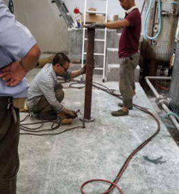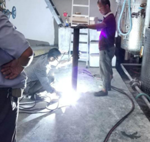 焊接:準(zhǔn)備好所有的配件,我們就要開始焊接過程了:將夾持用的法蘭,固定的螺紋底座安裝于管道中。